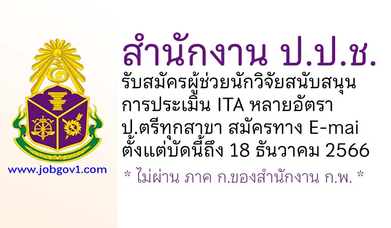 สำนักงาน ป.ป.ช. รับสมัครผู้ช่วยนักวิจัยสนับสนุนการประเมิน ITA หลายอัตรา ตั้งแต่บัดนี้ถึง 18 ธันวาคม 2566