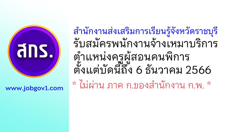 สำนักงานส่งเสริมการเรียนรู้จังหวัดราชบุรี รับสมัครพนักงานจ้างเหมาบริการ ตำแหน่งครูผู้สอนคนพิการ ตั้งแต่บัดนี้ถึง 6 ธันวาคม 2566