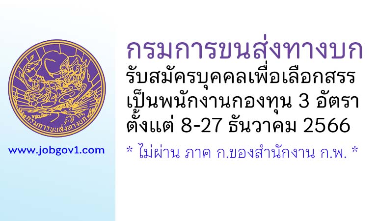กรมการขนส่งทางบก รับสมัครบุคคลเพื่อเลือกสรรเป็นพนักงานกองทุน 3 อัตรา ตั้งแต่วันที่ 8-27 ธันวาคม 2566