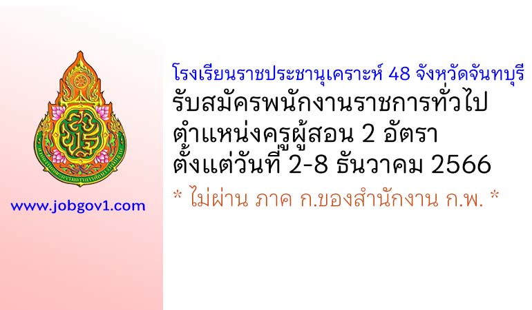 โรงเรียนราชประชานุเคราะห์ 48 จังหวัดจันทบุรี รับสมัครพนักงานราชการทั่วไป ตำแหน่งครูผู้สอน 2 อัตรา ตั้งแต่วันที่ 2-8 ธันวาคม 2566