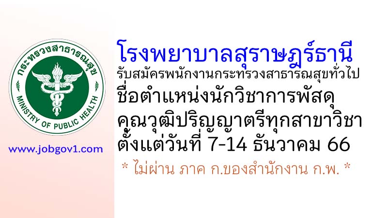 โรงพยาบาลสุราษฎร์ธานี รับสมัครพนักงานกระทรวงสาธารณสุขทั่วไป ตำแหน่งนักวิชาการพัสดุ ตั้งแต่วันที่ 7-14 ธันวาคม 2566