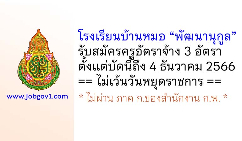 โรงเรียนบ้านหมอ “พัฒนานุกูล” รับสมัครครูอัตราจ้าง 3 อัตรา ตั้งแต่บัดนี้ถึง 4 ธันวาคม 2566