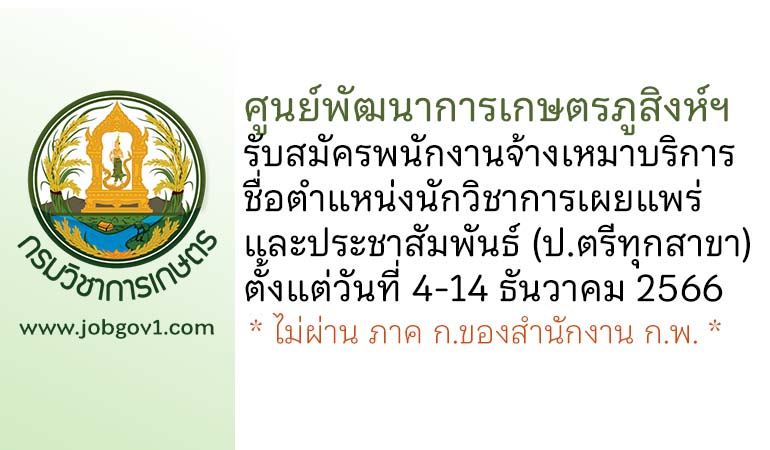 ศูนย์พัฒนาการเกษตรภูสิงห์ฯ รับสมัครพนักงานจ้างเหมาบริการ ตำแหน่งนักวิชาการเผยแพร่และประชาสัมพันธ์ ตั้งแต่วันที่ 4-14 ธันวาคม 2566