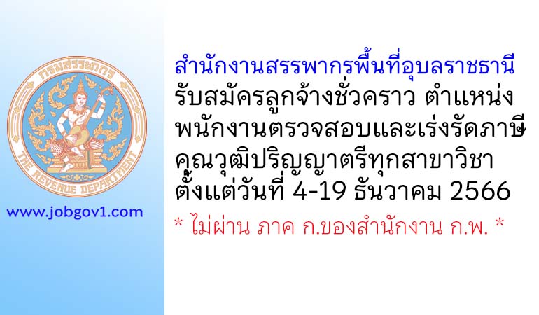 สำนักงานสรรพากรพื้นที่อุบลราชธานี รับสมัครลูกจ้างชั่วคราว ตำแหน่งพนักงานตรวจสอบและเร่งรัดภาษี ตั้งแต่วันที่ 4-19 ธันวาคม 2566