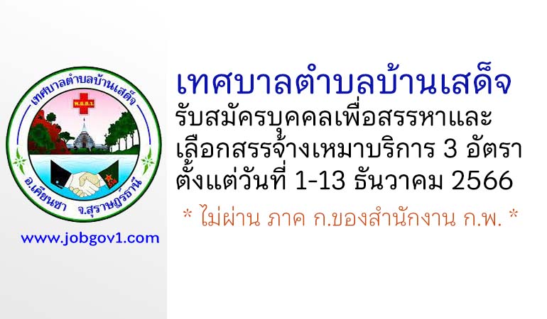 เทศบาลตำบลบ้านเสด็จ รับสมัครบุคคลเพื่อสรรหาและเลือกสรรจ้างเหมาบริการ 3 อัตรา ตั้งแต่วันที่ 1-13 ธันวาคม 2566