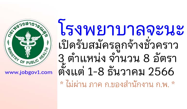 โรงพยาบาลจะนะ รับสมัครลูกจ้างชั่วคราว 3 ตำแหน่ง 8 อัตรา ตั้งแต่วันที่ 1-8 ธันวาคม 2566