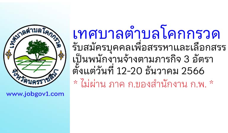 เทศบาลตำบลโคกกรวด รับสมัครบุคคลเพื่อสรรหาและเลือกสรรเป็นพนักงานจ้างตามภารกิจ 3 อัตรา ตั้งแต่วันที่ 12-20 ธันวาคม 2566