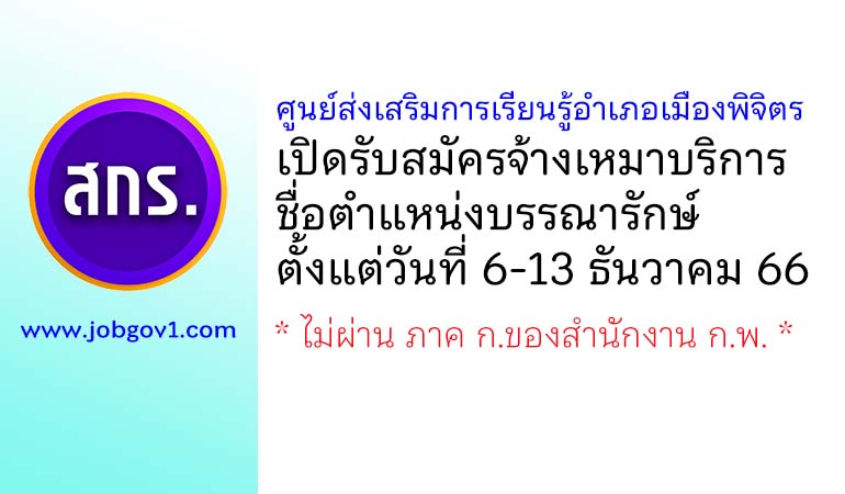 ศูนย์ส่งเสริมการเรียนรู้อำเภอเมืองพิจิตร รับสมัครจ้างเหมาบริการ ตำแหน่งบรรณารักษ์ ตั้งแต่วันที่ 6-13 ธันวาคม 2566