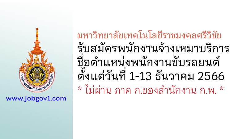 มหาวิทยาลัยเทคโนโลยีราชมงคลศรีวิชัย รับสมัครพนักงานจ้างเหมาบริการ ตำแหน่งพนักงานขับรถยนต์ ตั้งแต่วันที่ 1-13 ธันวาคม 2566