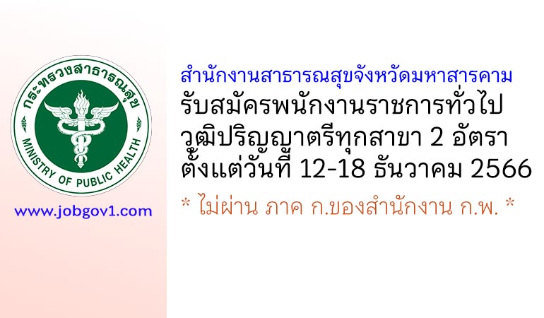 สำนักงานสาธารณสุขจังหวัดมหาสารคาม รับสมัครบุคคลเพื่อเลือกสรรเป็นพนักงานราชการทั่วไป 2 อัตรา ตั้งแต่วันที่ 12-18 ธันวาคม 2566