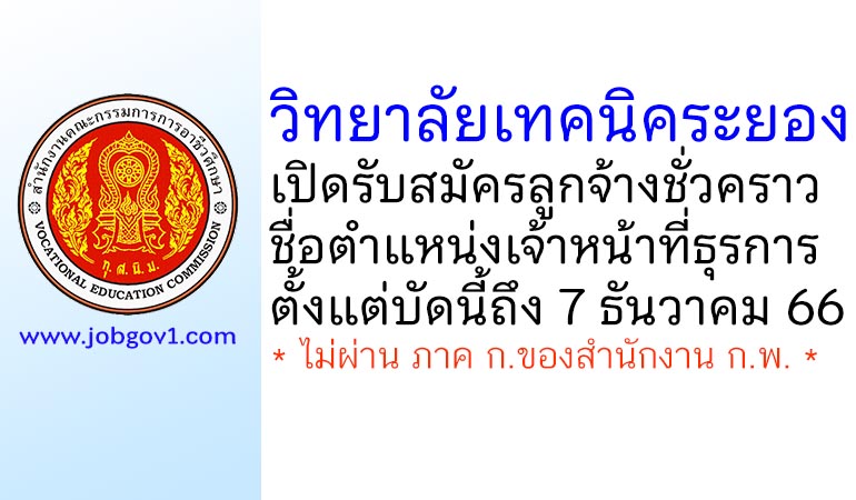 วิทยาลัยเทคนิคระยอง รับสมัครลูกจ้างชั่วคราว ตำแหน่งเจ้าหน้าที่ธุรการ ตั้งแต่บัดนี้ถึง 7 ธันวาคม 2566