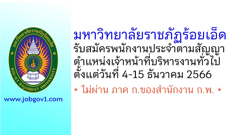 มหาวิทยาลัยราชภัฏร้อยเอ็ด รับสมัครพนักงานประจำตามสัญญา ตำแหน่งเจ้าหน้าที่บริหารงานทั่วไป ตั้งแต่วันที่ 4-15 ธันวาคม 2566