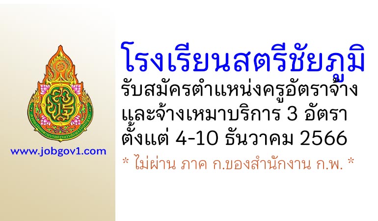 โรงเรียนสตรีชัยภูมิ รับสมัครครูอัตราจ้าง และจ้างเหมาบริการ 3 อัตรา ตั้งแต่วันที่ 4-10 ธันวาคม 2566