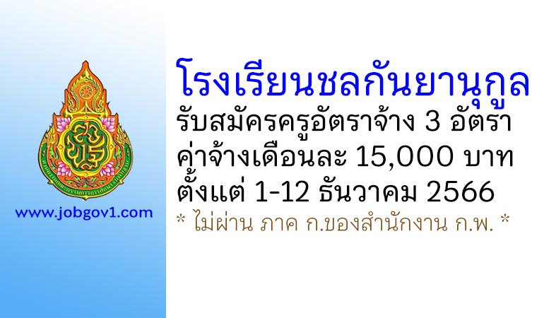 โรงเรียนชลกันยานุกูล รับสมัครครูอัตราจ้าง จำนวน 3 อัตรา ตั้งแต่วันที่ 1-12 ธันวาคม 2566