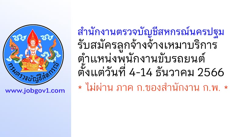 สำนักงานตรวจบัญชีสหกรณ์นครปฐม รับสมัครลูกจ้างจ้างเหมาบริการ ตำแหน่งพนักงานขับรถยนต์ ตั้งแต่วันที่ 4-14 ธันวาคม 2566