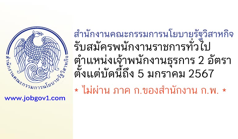 สำนักงานคณะกรรมการนโยบายรัฐวิสาหกิจ รับสมัครบุคคลเพื่อสรรหาและเลือกสรรพนักงานราชการ 2 อัตรา ตั้งแต่บัดนี้ถึง 5 มกราคม 2567