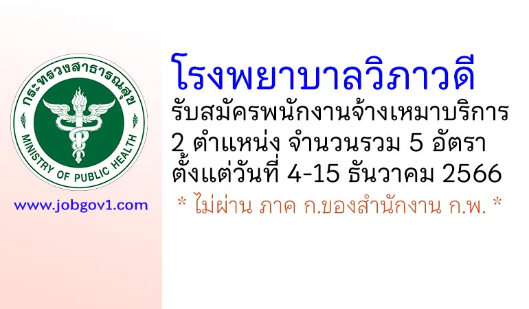 โรงพยาบาลวิภาวดี รับสมัครพนักงานจ้างเหมาบริการ 2 ตำแหน่ง 5 อัตรา ตั้งแต่วันที่ 4-15 ธันวาคม 2566