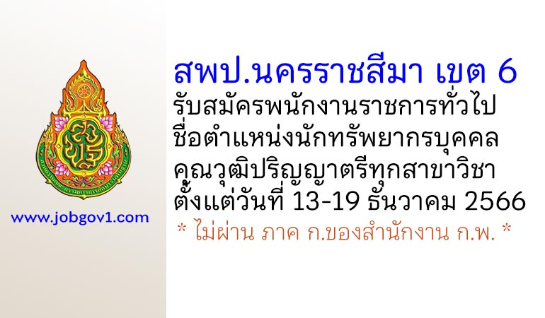 สพป.นครราชสีมา เขต 6 รับสมัครพนักงานราชการทั่วไป ตำแหน่งนักทรัพยากรบุคคล ตั้งแต่วันที่ 13-19 ธันวาคม 2566