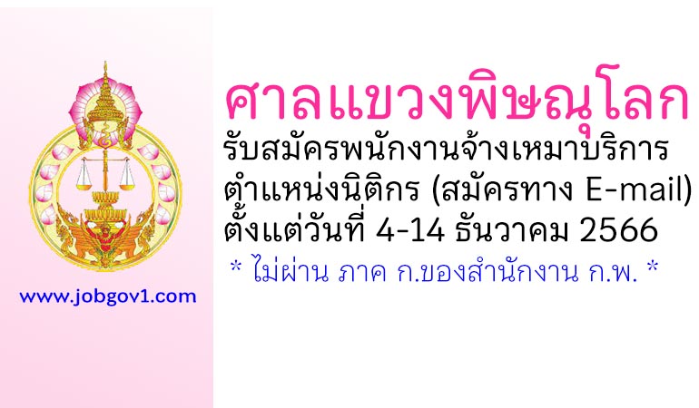 ศาลแขวงพิษณุโลก รับสมัครพนักงานจ้างเหมาบริการ ตำแหน่งนิติกร ตั้งแต่วันที่ 4-14 ธันวาคม 2566