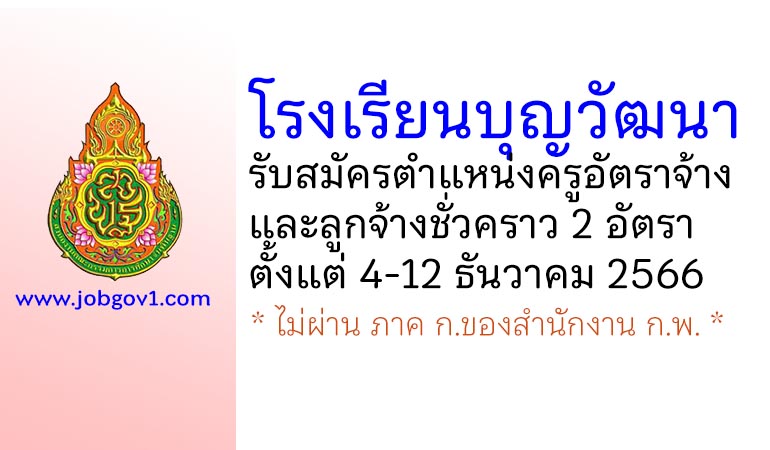 โรงเรียนบุญวัฒนา รับสมัครครูอัตราจ้าง และลูกจ้างชั่วคราว 2 อัตรา ตั้งแต่วันที่ 4-12 ธันวาคม 2566