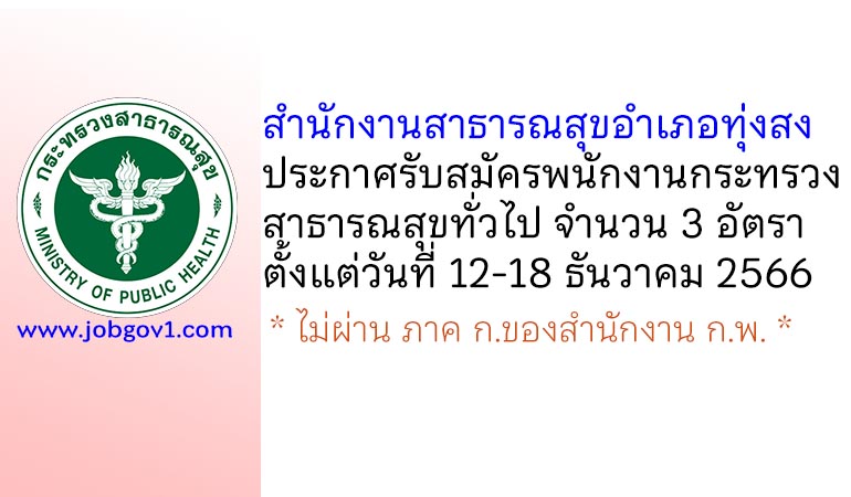 สำนักงานสาธารณสุขอำเภอทุ่งสง รับสมัครพนักงานกระทรวงสาธารณสุขทั่วไป 3 อัตรา ตั้งแต่วันที่ 12-18 ธันวาคม 2566