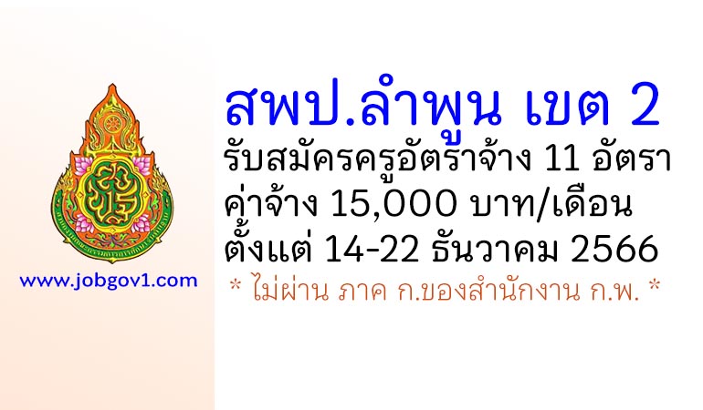 สพป.ลำพูน เขต 2 รับสมัครครูอัตราจ้าง จำนวน 11 อัตรา ตั้งแต่วันที่ 14-22 ธันวาคม 2566