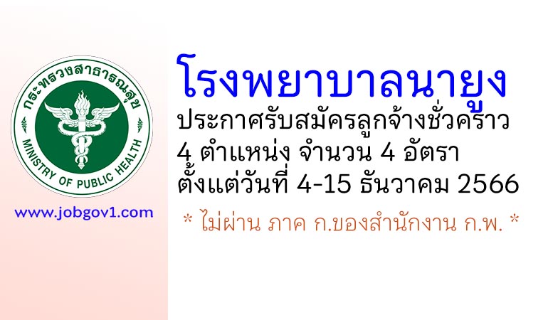 โรงพยาบาลนายูง รับสมัครลูกจ้างชั่วคราว 4 อัตรา ตั้งแต่วันที่ 4-15 ธันวาคม 2566
