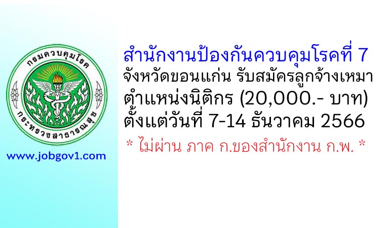 สำนักงานป้องกันควบคุมโรคที่ 7 จังหวัดขอนแก่น รับสมัครลูกจ้างเหมาบริการ ตำแหน่งนิติกร ตั้งแต่วันที่ 7-14 ธันวาคม 2566