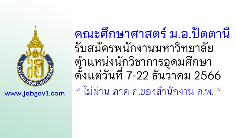 คณะศึกษาศาสตร์ ม.อ.ปัตตานี รับสมัครพนักงานมหาวิทยาลัย ตำแหน่งนักวิชาการอุดมศึกษา ตั้งแต่วันที่ 7-22 ธันวาคม 2566
