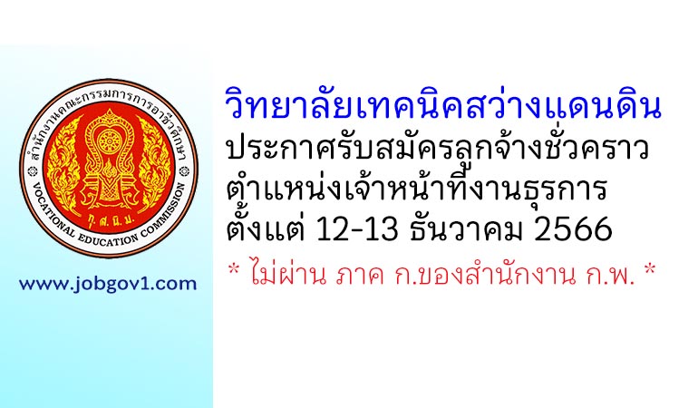 วิทยาลัยเทคนิคสว่างแดนดิน รับสมัครลูกจ้างชั่วคราว ตำแหน่งเจ้าหน้าที่งานธุรการ ตั้งแต่วันที่ 12-13 ธันวาคม 2566