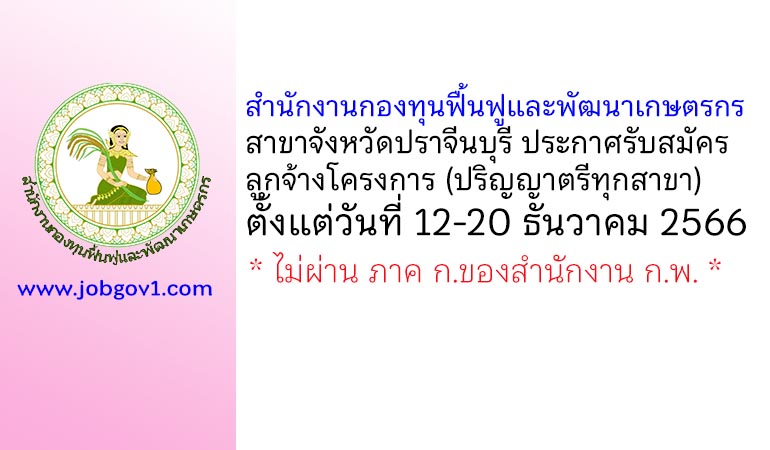 สำนักงานกองทุนฟื้นฟูและพัฒนาเกษตรกร สาขาจังหวัดปราจีนบุรี รับสมัครลูกจ้างโครงการ 1 อัตรา ตั้งแต่วันที่ 12-20 ธันวาคม 2566