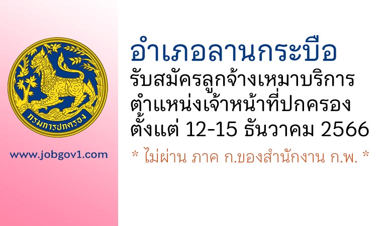 อำเภอลานกระบือ รับสมัครลูกจ้างเหมาบริการ ตำแหน่งเจ้าหน้าที่ปกครอง ตั้งแต่วันที่ 12-15 ธันวาคม 2566