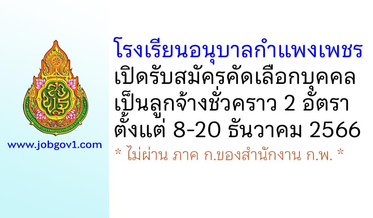 โรงเรียนอนุบาลกำแพงเพชร รับสมัครคัดเลือกบุคคลเป็นลูกจ้างชั่วคราว 2 อัตรา ตั้งแต่วันที่ 8-20 ธันวาคม 2566