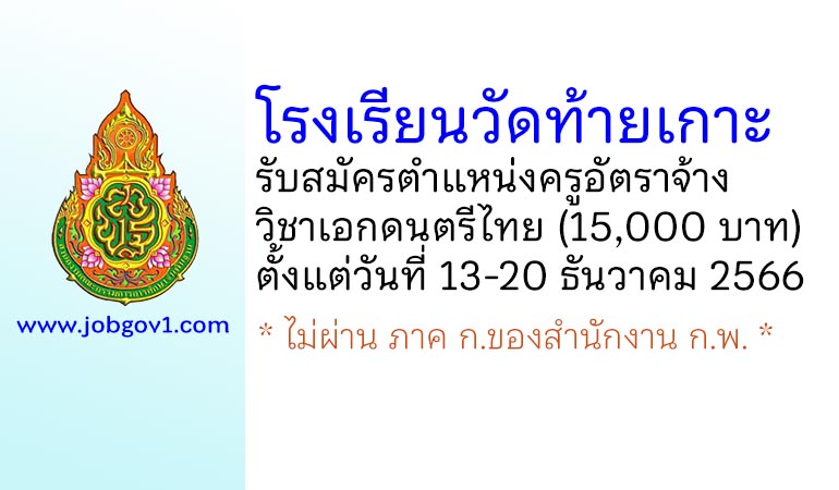โรงเรียนวัดท้ายเกาะ รับสมัครครูอัตราจ้าง วิชาเอกดนตรีไทย ตั้งแต่วันที่ 13-20 ธันวาคม 2566