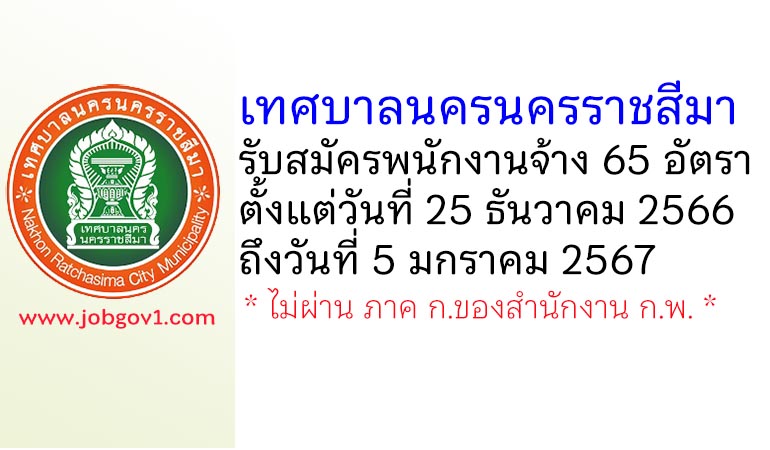 เทศบาลนครนครราชสีมา รับสมัครบุคคลเพื่อสรรหาและเลือกสรรเป็นพนักงานจ้าง 65 อัตรา ตั้งแต่วันที่ 25 ธันวาคม 2566 – 5 มกราคม 2567