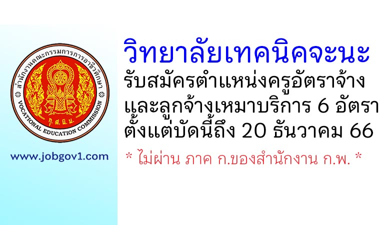 วิทยาลัยเทคนิคจะนะ รับสมัครครูอัตราจ้าง และลูกจ้างเหมาบริการ 6 อัตรา ตั้งแต่บัดนี้ถึง 20 ธันวาคม 2566