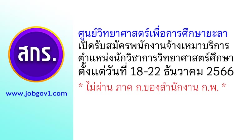 ศูนย์วิทยาศาสตร์เพื่อการศึกษายะลา รับสมัครพนักงานจ้างเหมาบริการ ตำแหน่งนักวิชาการวิทยาศาสตร์ศึกษา ตั้งแต่วันที่ 18-22 ธันวาคม 2566