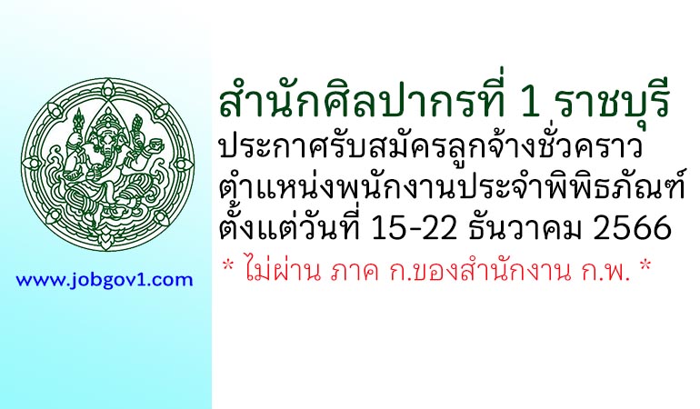 สำนักศิลปากรที่ 1 ราชบุรี รับสมัครลูกจ้างชั่วคราว ตำแหน่งพนักงานประจำพิพิธภัณฑ์ ตั้งแต่วันที่ 15-22 ธันวาคม 2566