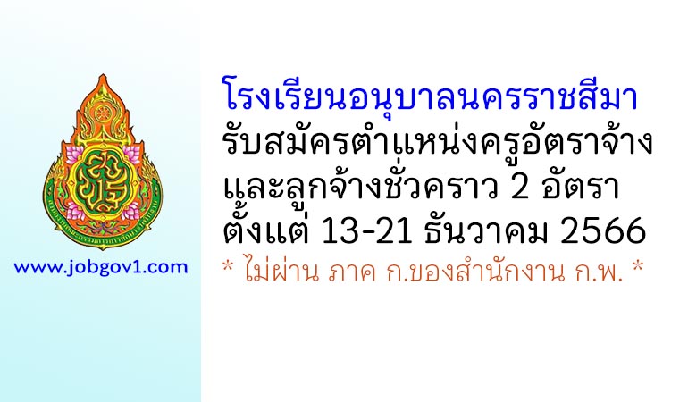 โรงเรียนอนุบาลนครราชสีมา รับสมัครครูอัตราจ้าง และลูกจ้างชั่วคราว 2 อัตรา ตั้งแต่วันที่ 13-21 ธันวาคม 2566
