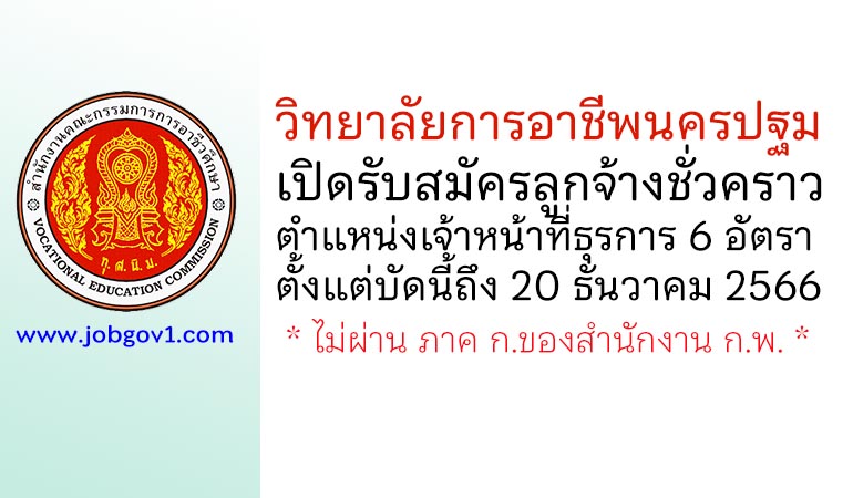 วิทยาลัยการอาชีพนครปฐม รับสมัครลูกจ้างชั่วคราว ตำแหน่งเจ้าหน้าที่ธุรการ 6 อัตรา ตั้งแต่บัดนี้ถึง 20 ธันวาคม 2566