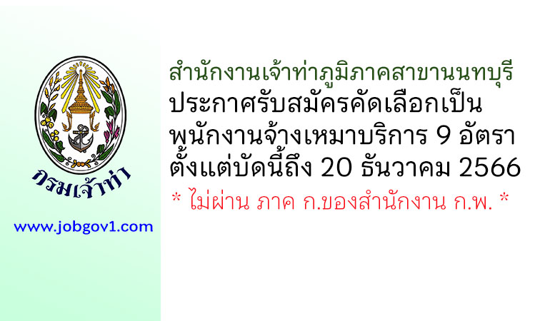 สำนักงานเจ้าท่าภูมิภาคสาขานนทบุรี รับสมัครคัดเลือกเป็นพนักงานจ้างเหมาบริการ 9 อัตรา ตั้งแต่บัดนี้ถึง 20 ธันวาคม 2566