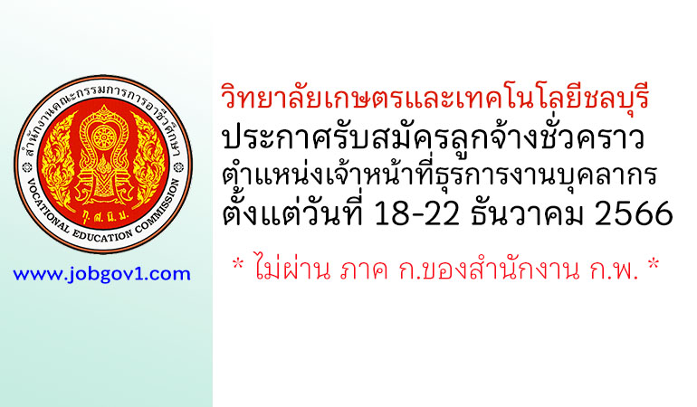 วิทยาลัยเกษตรและเทคโนโลยีชลบุรี รับสมัครลูกจ้างชั่วคราว ตำแหน่งเจ้าหน้าที่ธุรการงานบุคลากร ตั้งแต่วันที่ 18-22 ธันวาคม 2566