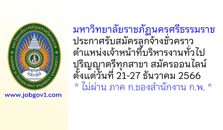 มหาวิทยาลัยราชภัฏนครศรีธรรมราช รับสมัครลูกจ้างชั่วคราว ตำแหน่งเจ้าหน้าที่บริหารงานทั่วไป ตั้งแต่วันที่ 21-27 ธันวาคม 2566