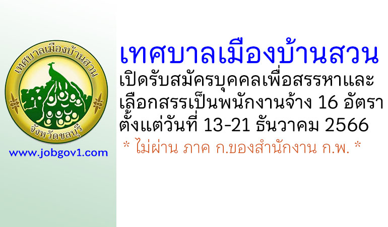 เทศบาลเมืองบ้านสวน รับสมัครบุคคลเพื่อสรรหาและเลือกสรรเป็นพนักงานจ้าง 16 อัตรา ตั้งแต่วันที่ 13-21 ธันวาคม 2566