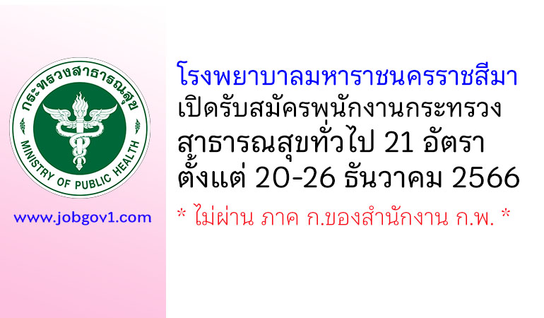 โรงพยาบาลมหาราชนครราชสีมา รับสมัครพนักงานกระทรวงสาธารณสุขทั่วไป 21 อัตรา ตั้งแต่วันที่ 20-26 ธันวาคม 2566