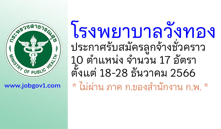 โรงพยาบาลวังทอง รับสมัครลูกจ้างชั่วคราว 10 ตำแหน่ง 17 อัตรา ตั้งแต่วันที่ 18-28 ธันวาคม 2566