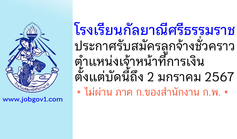 โรงเรียนกัลยาณีศรีธรรมราช รับสมัครลูกจ้างชั่วคราว ตำแหน่งเจ้าหน้าที่การเงิน ตั้งแต่บัดนี้ถึง 2 มกราคม 2567