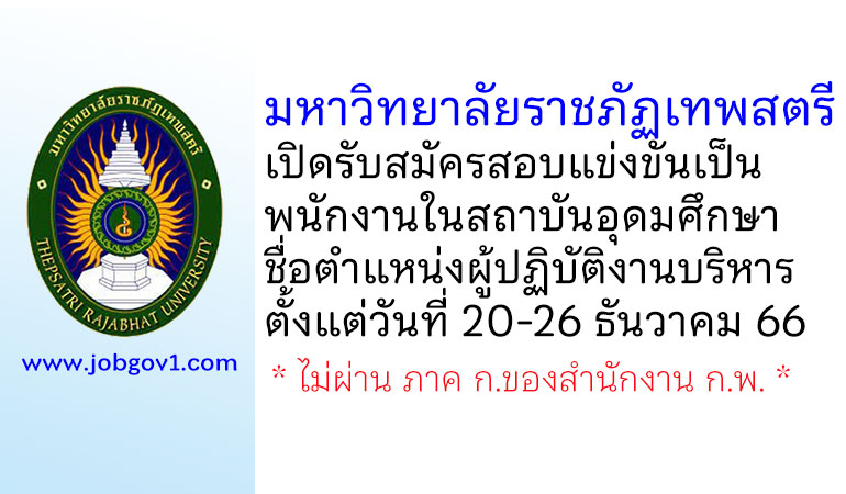 มหาวิทยาลัยราชภัฏเทพสตรี รับสมัครพนักงานในสถาบันอุดมศึกษา ตำแหน่งผู้ปฏิบัติงานบริหาร ตั้งแต่วันที่ 20-26 ธันวาคม 2566