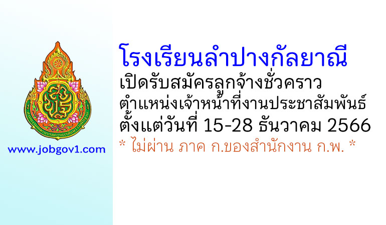 โรงเรียนลำปางกัลยาณี รับสมัครลูกจ้างชั่วคราว ตำแหน่งเจ้าหน้าที่งานประชาสัมพันธ์ ตั้งแต่วันที่ 15-28 ธันวาคม 2566