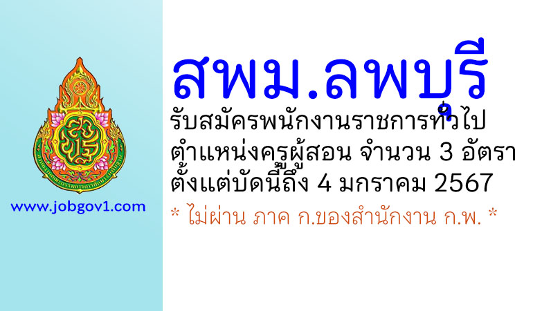 สพม.ลพบุรี รับสมัครพนักงานราชการทั่วไป ตำแหน่งครูผู้สอน 3 อัตรา ตั้งแต่บัดนี้ถึง 4 มกราคม 2567
